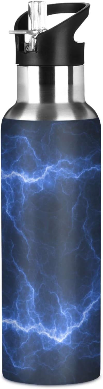 Qilmy Black and White Leopard Water Bottle Vacuum Insulated Stainless Steel Water Bottles with Straw Lid Leakproof Wide Mouth Water Flask for Fitness Outdoor Sports, 20 oz