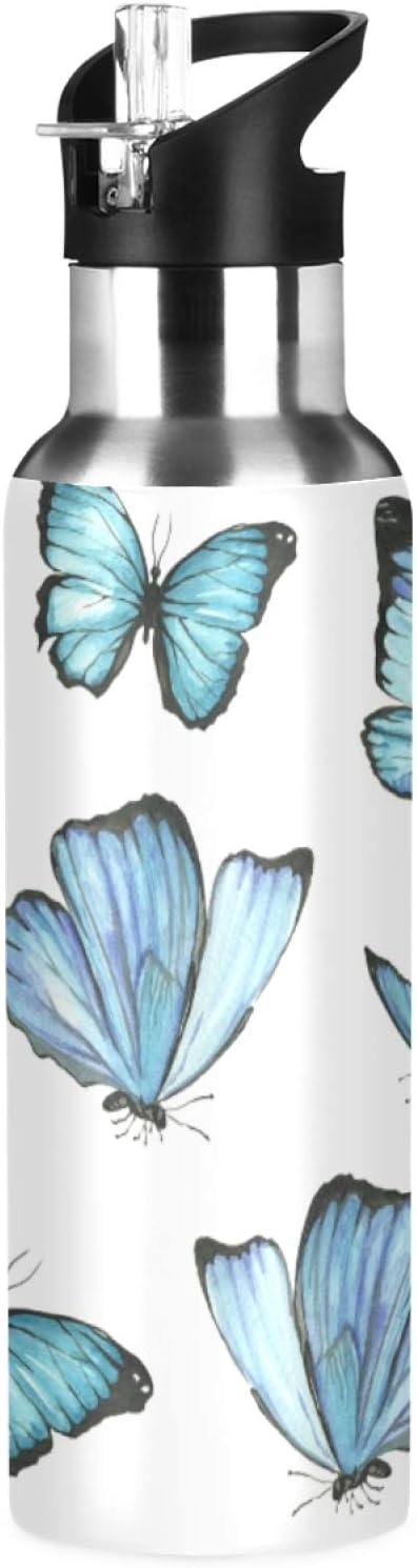 Qilmy Black and White Leopard Water Bottle Vacuum Insulated Stainless Steel Water Bottles with Straw Lid Leakproof Wide Mouth Water Flask for Fitness Outdoor Sports, 20 oz