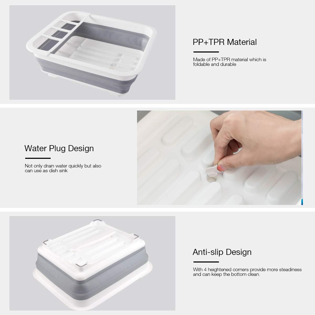 THANSTAR Collapsible Dish Drying Rack Portable Dinnerware Drainer Organizer for Kitchen RV Campers Travel Trailer Space Saving Kitchen Storage Tray