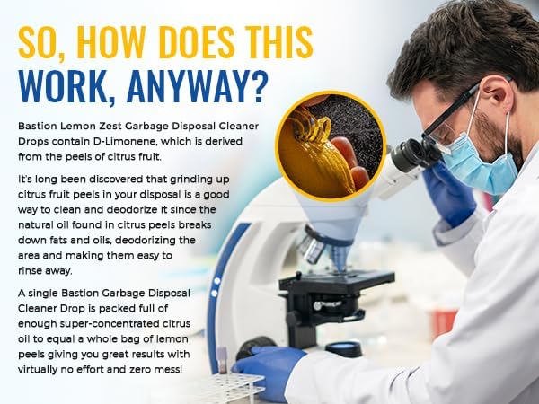 - SAFE & EFFECTIVE: Bastion Garbage Disposal Drops use the active ingredient D-Limonene, derived from the peels of citrus fruit, to get in deep and break up and rinse away smelly fats, oils, and food particles leaving a septic safe, fresh, and clean environment that smells amazing.