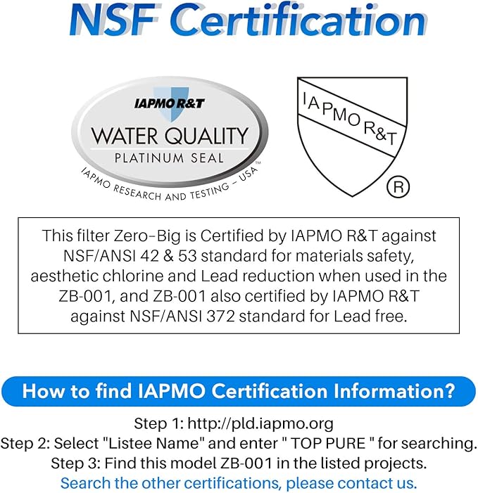 - External Testing Certification : ANSI, NSF