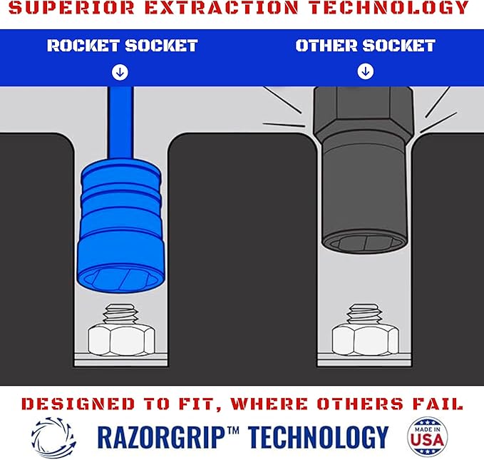 - True Limited Lifetime Warranty: Crafted from the highest quality American Drawn Steel and manufactured with precision, every Rocketsocket extractor socket set comes with a genuine Limited Lifetime Warranty. Invest in a product that stands the test of time and trust Rocketsocket for your toughest jobs.