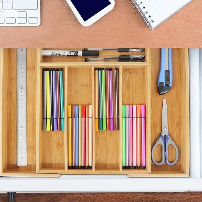 - Bamboo Material: Our kitchen bamboo silverware drawer organizer is made of moso bamboo; The beautiful color and the timeless design make it fit perfectly into your home decor