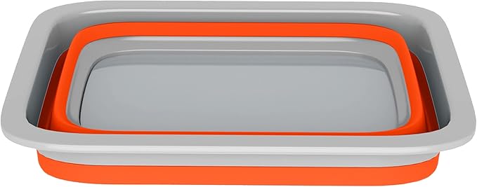 - PRODUCT DETAILS – Materials: pp/TPR (plastic/plastic rubber). Dimensions: 14.75" L x 10.75" W x 5" H, Collapsed: 2" H. 10 L capacity. Color: Orange.