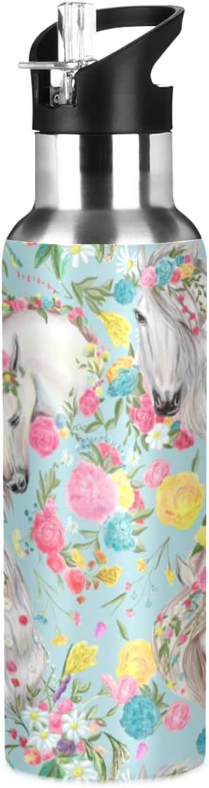 MNSRUU Insulated Water Bottle with Straw, Rainbow and Unicorns Stainless Steel Flasks for Sports Cycling Hiking School