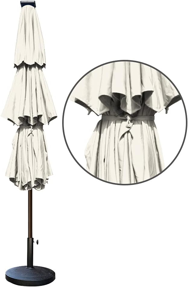 EliteShade USA 10-Year-Non-Fading Solar 9ft 3 Tiers Market Umbrella with 80 LED Lights Patio Umbrellas Outdoor Table with Ventilation,Natural