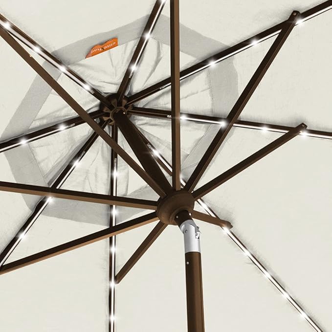 - LED Lighting From the Sun: Dual switched hub light and 80 rib lights, more than most LED lights of patio umbrellas on the market. More rib lights provide a brighter view. Built-in rib lights are not easy to damage and aging. Powered by a solar rechargeable battery.