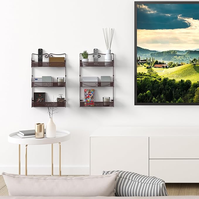 Deco Brothers 3 Tier Wall Mounted Spice Rack, 2 Pack, Bronze