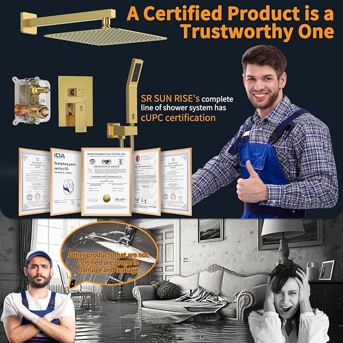 - Install with Confidence: SR SUN RISE Shower System has cUPC Certification and compliance with the following standard(s): ASME A112.18.1-2018/CSA B125.1-18. Designed for use with standard 1/2" U.S. plumbing connections. Approved by the California Energy Commission.