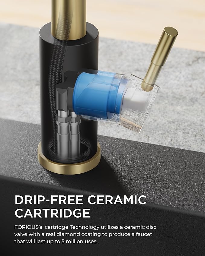 - Premium Quality: This faucet for kitchen sink is made from lead-free SUS 304 stainless steel and features a durable five-layer nanotechnology finish, while its ceramic cartridge—tested to over 5,00,000 cycles—guarantees leak-proof performance