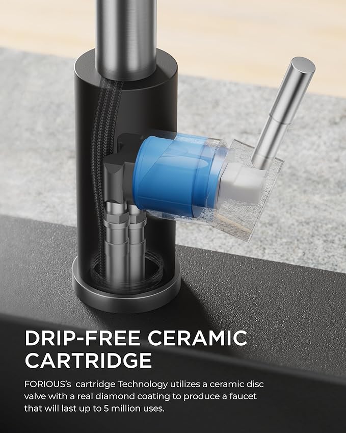 - Premium Quality: This faucet for kitchen sink is made from lead-free SUS 304 stainless steel and features a durable five-layer nanotechnology finish, while its ceramic cartridge—tested to over 5,00,000 cycles—guarantees leak-proof performance