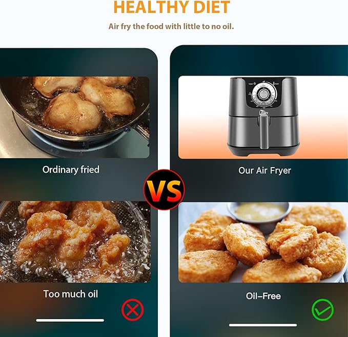 Uten 5.8 Quart Air Fryer, 1700W Hot Oven Oilless Cooker,Non-Stick Fry Basket, Manual Air Fryer with Timer Knob and Temperature Knob, Black