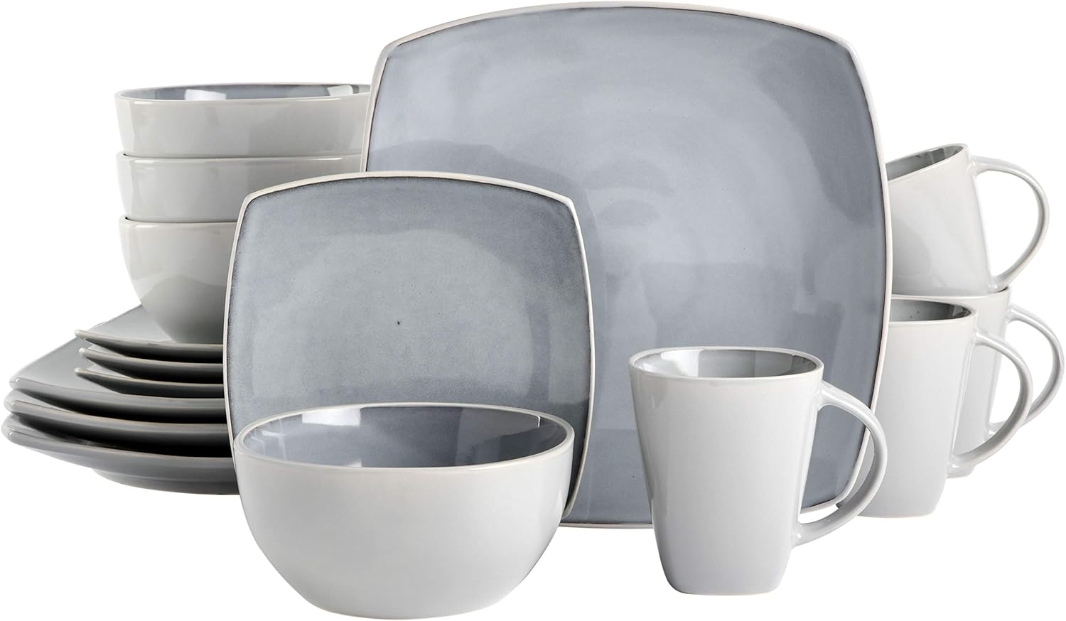 Gibson Elite Soho Lounge Square Reactive Glaze Stoneware Dinnerware Set, Service for 4 (16pc), Light Gray