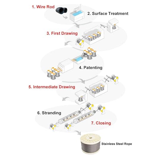 - 【Size】1/8-Inch Diameter(3.2MM), 400-Feet Length, breaking strength 1850 pounds. Safe tension in using is 260 pounds. Cable construction-7x7 construction, 7x7 strand is a semi-flexible multi purpose stainless steel wire rope with a braided surface and bright finish. It will not unravel after cutting and maintains its stretch over time. BLIKA stainless steel wire rope has reliable breaking strains and corrosion resistance.