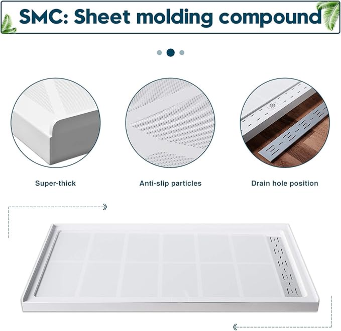- Premium Shower Pan: Made from Sheet molding compound,light-weight, corrosion resistance, water resistance, insulation, bending resistance, heat resistance, durability