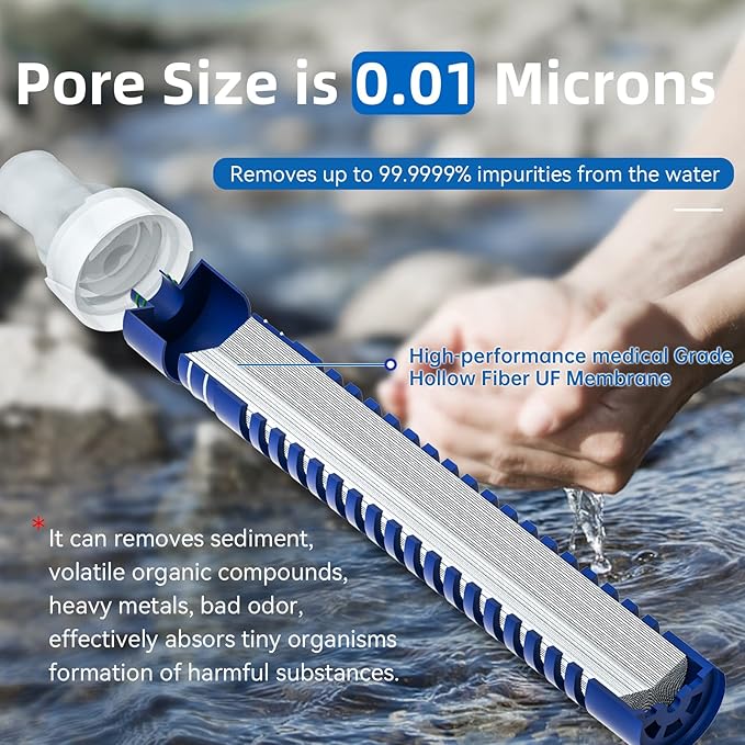 - 💧MILITARY TPU MATERIAL: the pocket water purifier bottle is made of military grade TPU material, soft medical grade silicone nozzle bottle, without any peculiar smell, it's extremely Durable. Up to 1000 liters (264 gallons) before it needs to be replaced.