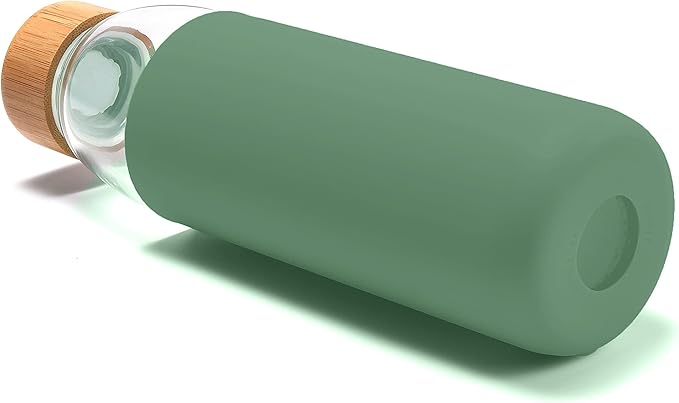 veegoal Glass Water Bottles 18 Oz Borosilicate with Bamboo Lid, BPA-FREE, Non-Slip Silicone Sleeve, and Stainless Steel Leak Proof Lid - Glass Water Bottle for Men and Women