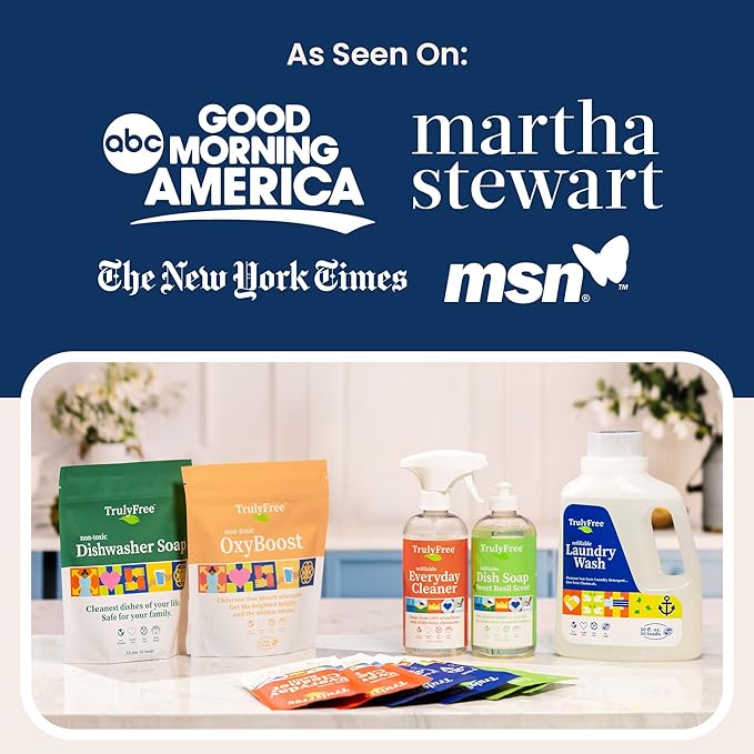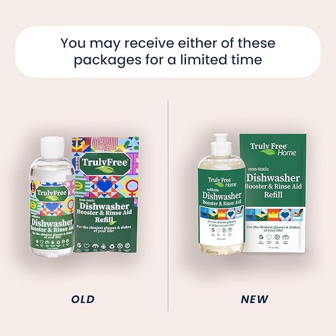Truly Free Natural Dishwasher Booster & Rinse Aid - Non-Toxic Dishwashing Aid Formula, Removes Residue & Tough Dish Stains, Water Spot Remover - Includes: 1 Reusable Empty 12 oz Bottle & 1 Refill