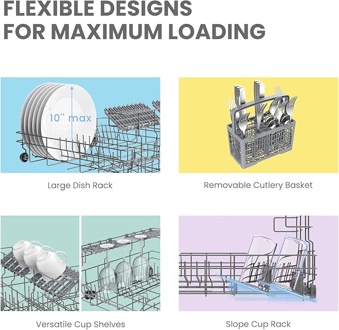 - Speed Program- Only takes you 45 minutes to get all dishes cleaned, perfect for hurry-up situations, like holding a multi-round party. Accompanied with compliant, water consumption can be as low as 2.77 gallons of water, which greatly saves your costs.