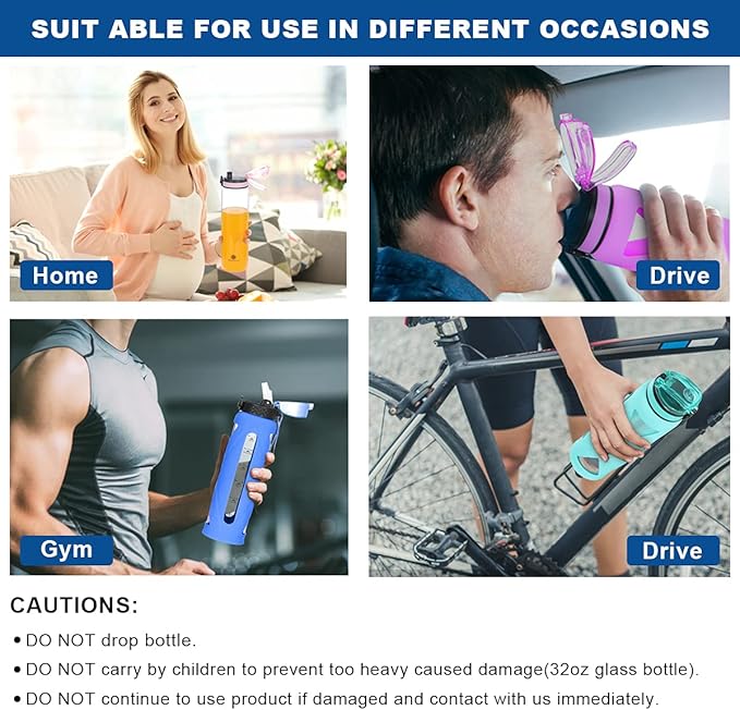 - 【PROTECTIVE SILICONE SLEEVE】 One glass bottle with silicone sleeve protector offers a secure grip and helps protect against breakage; Also, the silicone sleeve helps keep with thermal insulation; Perfect for running, gym, hiking, cycling and any other fitness activity; It's the best gift idea for you, your family members, or friends who enjoy a healthy lifestyle