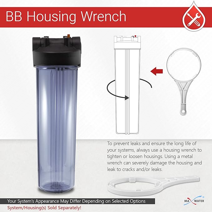 - 💧 Compatibility : Max Water filter wrench fits standard 20" x 4.5" & 10" x 4.5" inch whole house heavy duty housings. This product is compatible with but not limited to - AQUABOON, Pentek DGD 5005,GE FXHTC, Aqua-Pure AP811, Ronaqua 3PP-10B, Pentek 150233, 150235, Geekpure BB- 20B, SimPure DB10, DB20 housings etc.