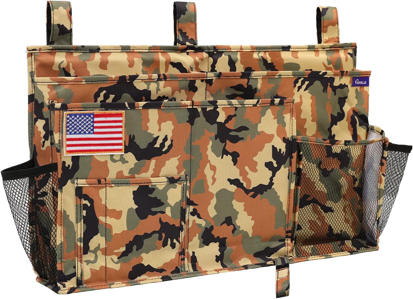 Surblue Bedside Caddy Hanging Organizer Storage Bag Pocket for Bunk, Hospital, College Dorm Rooms, Baby Bed Rails, Camp - 8 Pockets (Large, Desert)