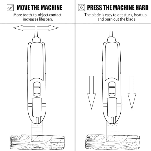 - Optimized Performance: Use the oscillating tool with a natural back-and-forth motion, allowing more teeth to engage with the material. This not only improves cutting efficiency but also reduces blade wear, prolonging its lifespan.