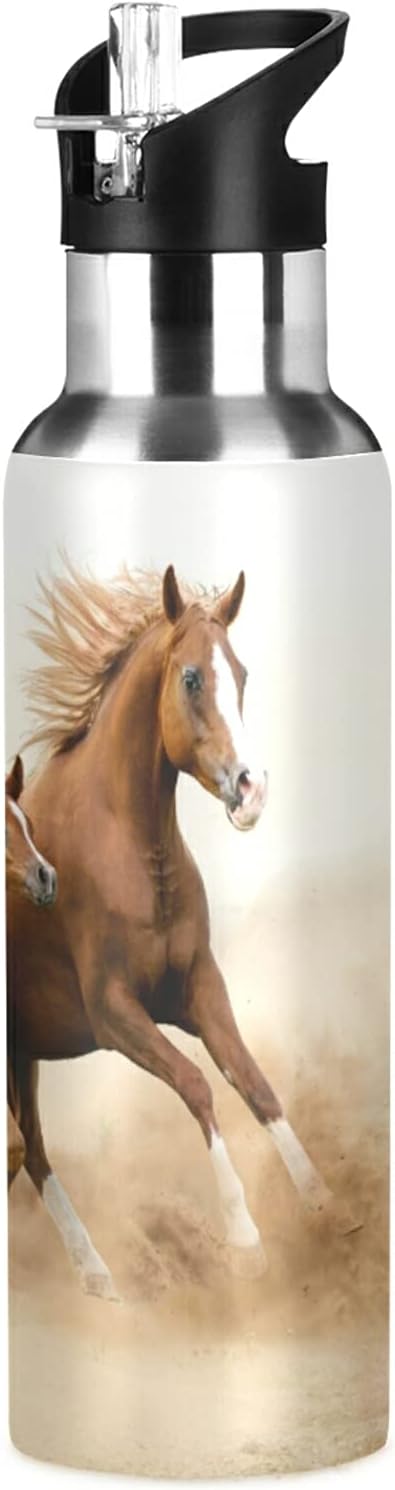 xigua Running Arabian Horse Water Bottle, BPA Free Stainless Steel Water Bottle Leak-Proof Sports Bottle for Camping Workouts Gym and Outdoor Activity, 22oz