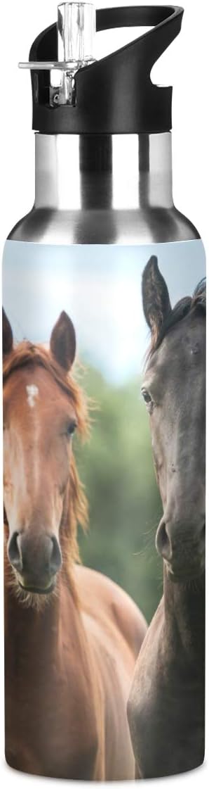 xigua 22 OZ Thinking Horse Water Bottle with Straw, Sports Water Bottle BPA Free Stainless Steel Water Jugs for Gym, Kitchen, Working, Outdoor