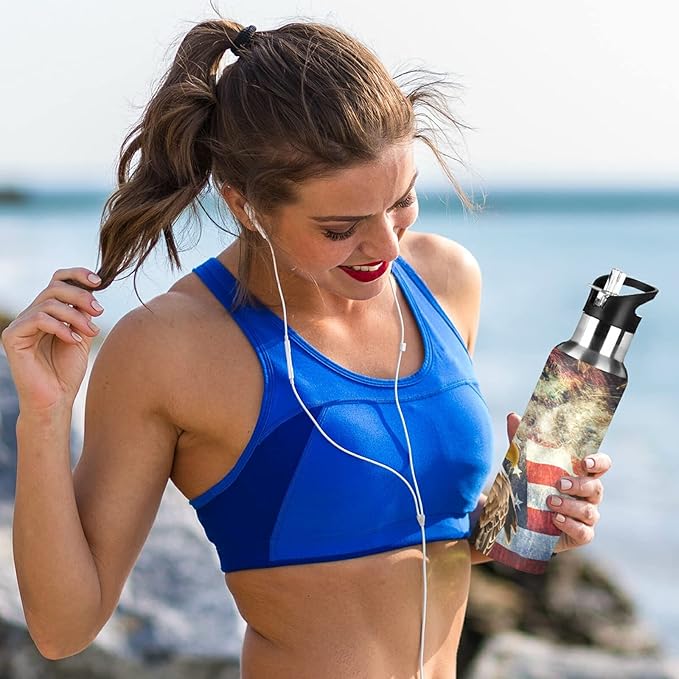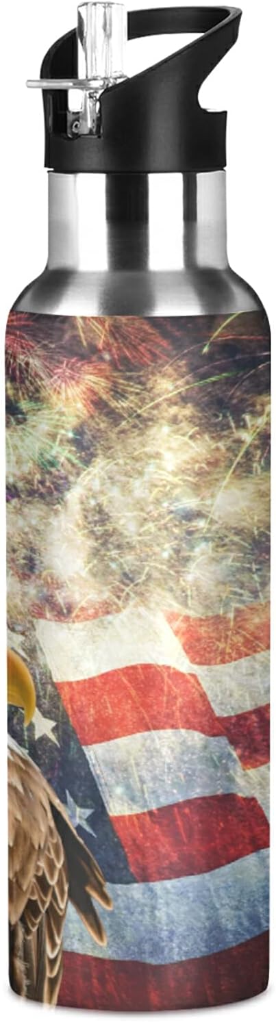 xigua 22 OZ Bald Eagle American Flag Water Bottle with Straw, Sports Water Bottle BPA Free Stainless Steel Water Jugs for Gym, Kitchen, Working, Outdoor