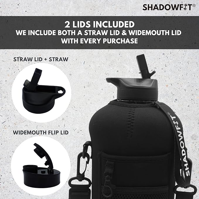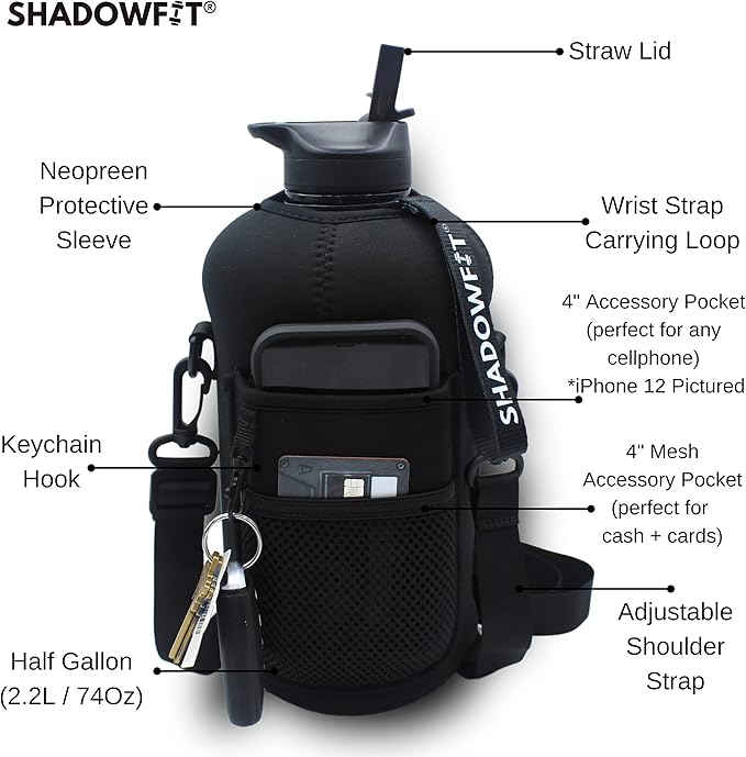 - Designed for a Great Workout: Our ShadowFit team wants you to be able to focus on getting in your best workouts! We have designed these large water bottles to not only keep you fully hydrated, but to create ease at the gym and during your outdoor fitness activities like hiking, biking, running, and sports. You can carry it around by the built-in handle, removable strap, or wrist-strap carrying loop while storing your keys, cell phone, cash, and cards.