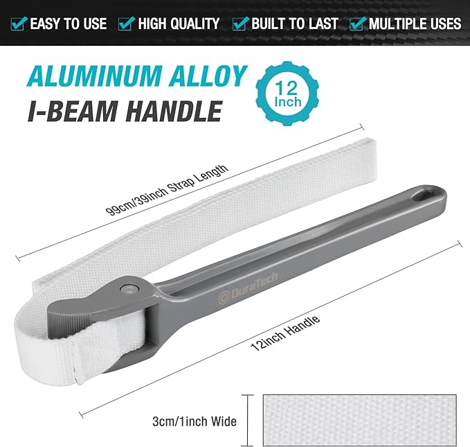 DURATECH Strap Wrench 12" Handle, Adjustable Nylon Strap Pipe Wrenches, Oil Filter Strap Opener Wrench