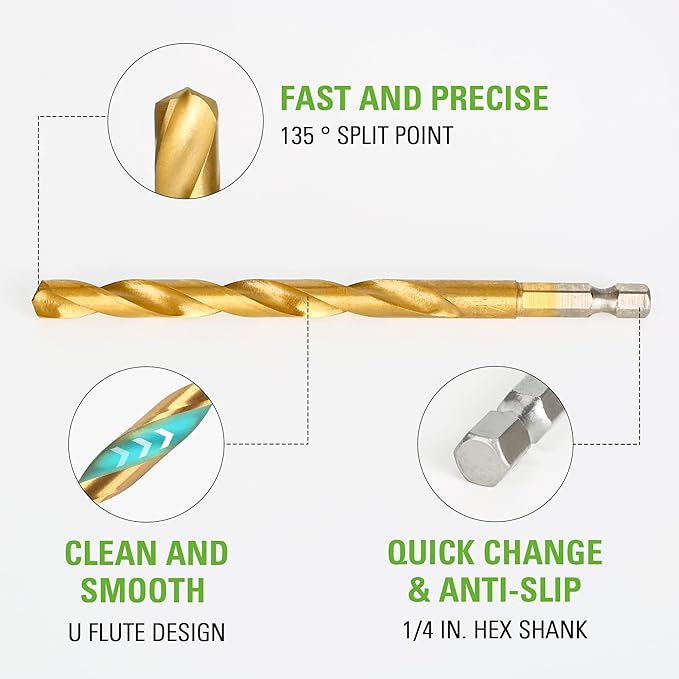 - SPLIT POINT TIP: 135-degree split point tips create clean holes by helping the bit grip, preventing wobbling or slipping