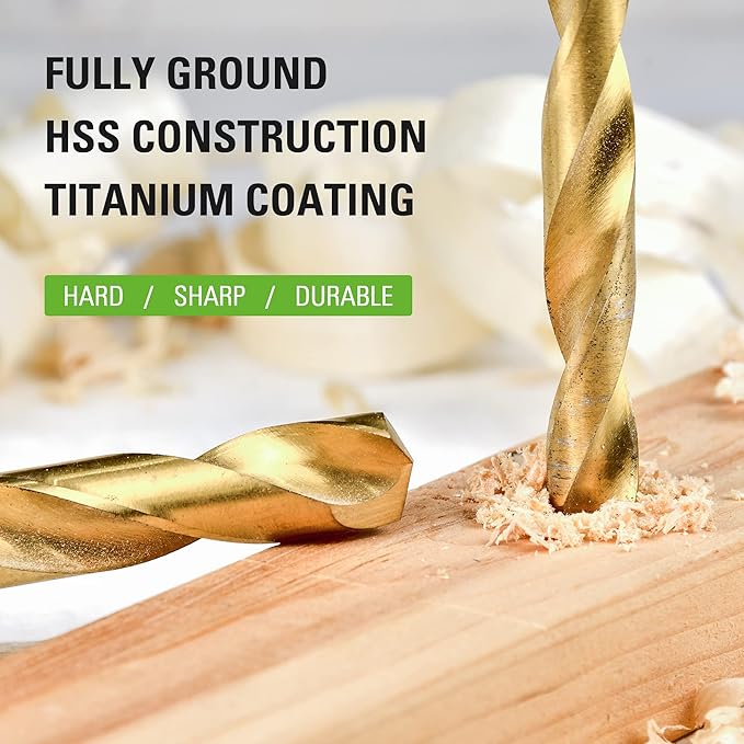 Greenworks 22 PC Titanium Twist Drill Bit Set, 135° Tip High Speed Steel, Ideal Drilling in Wood/Cast Iron/Aluminum Alloy/Plastic/Fiberglass