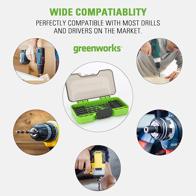 Greenworks 14 Pcs Black Oxide Drilling Bit Set,135 Degree Split Point, Black Oxide Coated, For Plastic, Wood and Metal