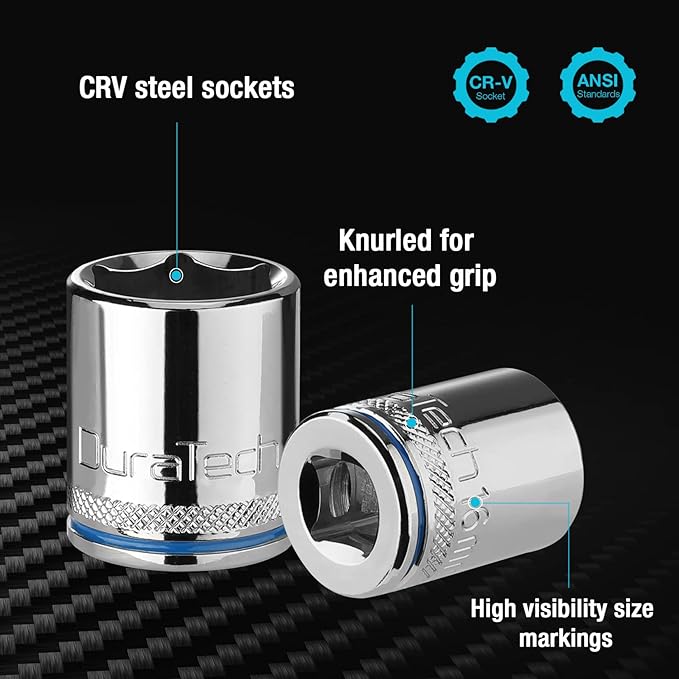 - ★CR-V STEEL FOR DURABILITY: All 3/8 drive sockets are forged from hardened chrome vanadium (Cr-V) steel, then heat treated, polished, corrosion-resistant chrome plated finish for maximum strength and durability.
