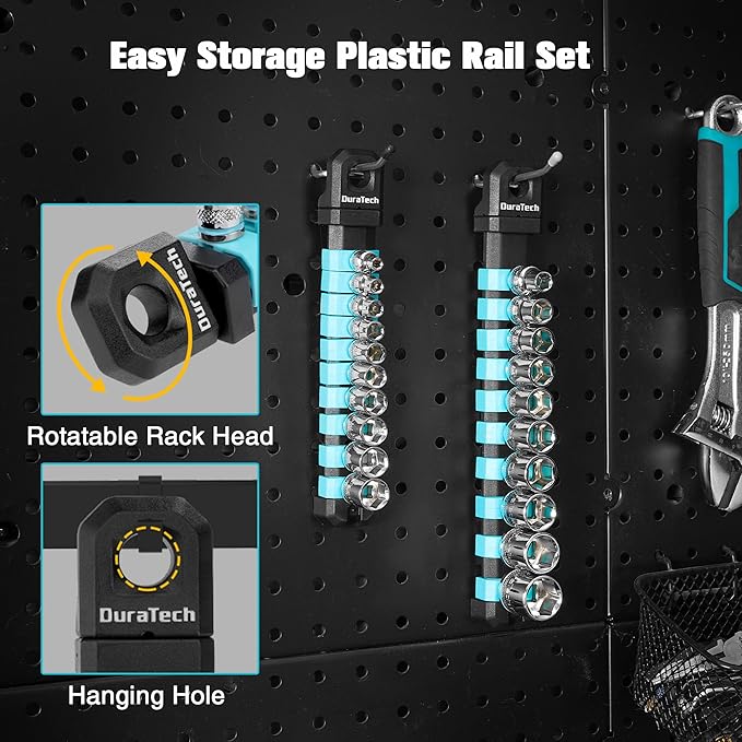 - ★CONVENIENT TO USE: These sockets are storage on the firm plastic rail with 360 degrees rotating head and hanging hole for organization and storage. Just press the blue plastic clip and pull out the socket to use.