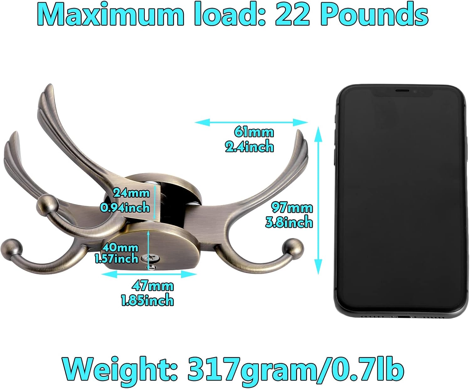 Swivel Coat Hook 2 Pack Heavy Duty Space Saving Towel Rope Hook Wall Mount Triple Swing Arms for RV Bathroom Kitchen Garage,Rustic Bronze