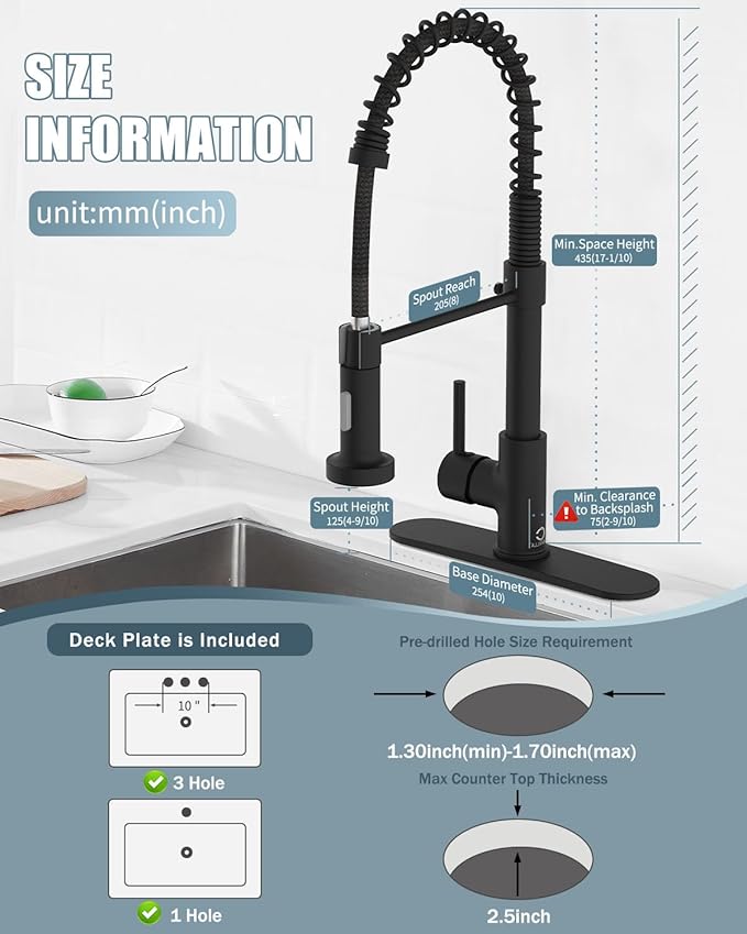 - 【EASY MAINTENANCE】Lead-free solid brass body and commercial SUS 304 stainless steel spring construction forged products. Matte Black surface treatment added 18/8 Chromium/Nickel content provides a superior anti-corrosion and anti-rust finish that prevents dirt such as fingerprints or water stains from adhering to the faucet surface, making the kitchen look cleaner. Daily cleaning with a cloth or water is enough, less time cleaning and more time having fun with your family.