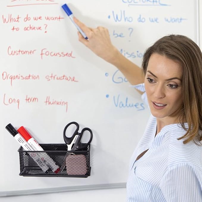 - Strong Magnetic Design: Mesh metal pen marker holder will stable glued on whiteboard. With 5 extra strong magnets, even heavy items like staplers, scissors and calculators won’t phase their intense gripping power.