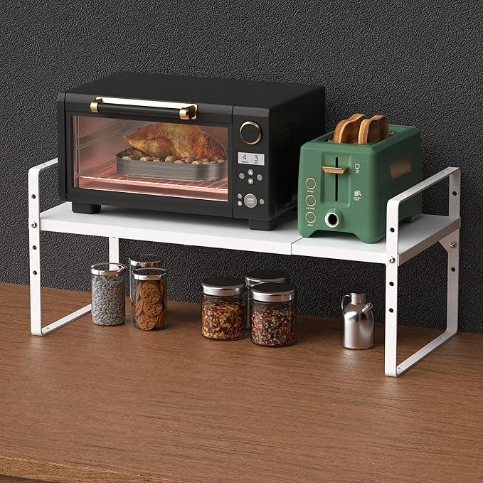 - 【Multifunctional storage】--This shelf will double your space! It can be used in various places in your home, including kitchen cabinets, desks, pantry, bathroom cabinets, closets, countertops, under the sink or any place that needs extra space to maximize storage and organization.