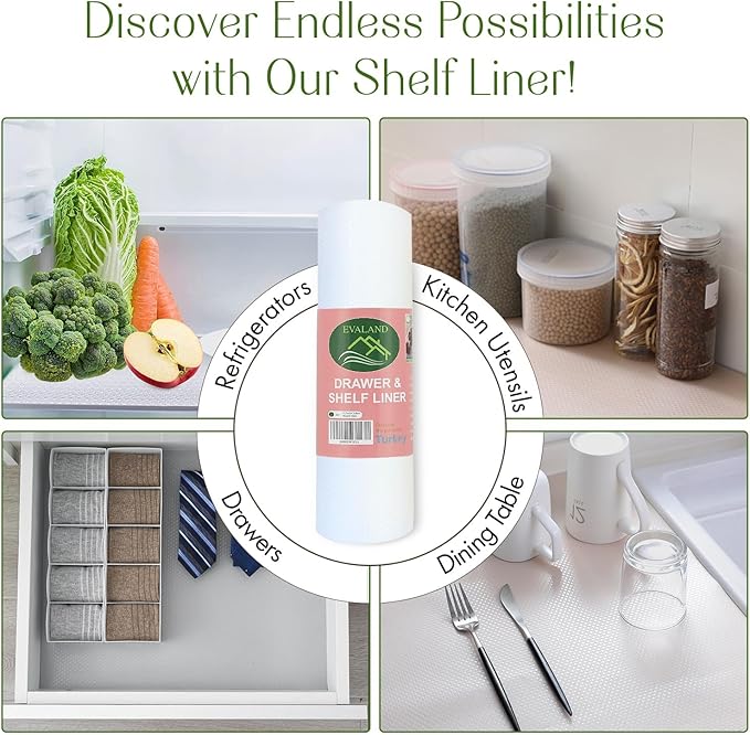 EVALAND 19.6 INCHES x 33 FEET (394 Inches) Non-Slip Shelf Liner, Original Smooth Shelf Liner, EVA Kitchen Liner, Non-Adhesive Liner, Stain-Proof Shelf, Drawer, Cabinet Liner