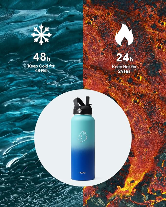 - What You Get: BUZIO 40oz Water Bottle with brush, Straw Lid, Flex Lid, 2 x Straws, our worry-free lifetime warranty and friendly customer service
