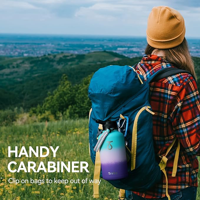Trebo Water Bottle 64oz with Paracord Handle, Half Gallon Food-grade Double Wall Vacuum Stainless Steel Insulated Jug with Straw Spout Handle Lids, Leakproof Keep Cold & Hot Ombre:Hydrangea