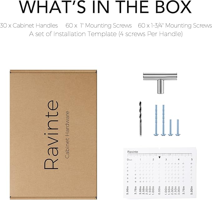 - Easy installation: brushed nickel cabinet pulls come with door and drawer templates and a drill bit. Measure the handle hole center, align the template, mark, and drill the holes. Easily install the brushed nickel hardware for your cabinets