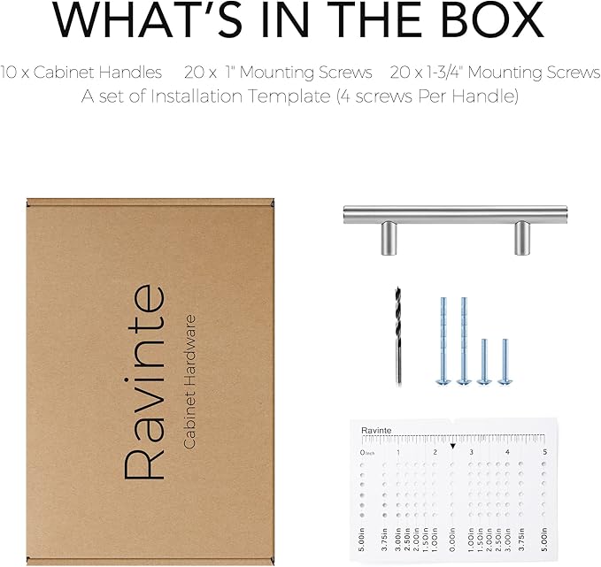 - Easy installation: brushed nickel cabinet pulls come with door and drawer templates and a drill bit. Measure the handle hole center, align the template, mark, and drill the holes. Easily install the brushed nickel hardware for your cabinets