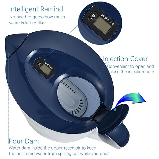 - Safety Materials and Unique Design; The water purifier pitcher is BPA free in NSF standard. Non-opening water injection design for the water filter pitcher, no need to take off the cover. Automatic dust-proof filter to prevent dust and other particles from entering.