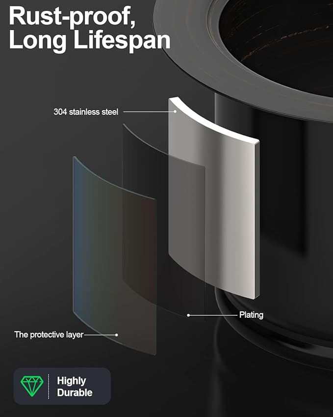 BOTEMY Extended Garbage Disposal Flange Basket Strainer Stopper, Deep 304 Stainless Steel Kitchen Sink Flange for 3-1/2 Inch Standard Sink Drain Hole, Bronze Deep Sink Disposal Stopper(ORB)