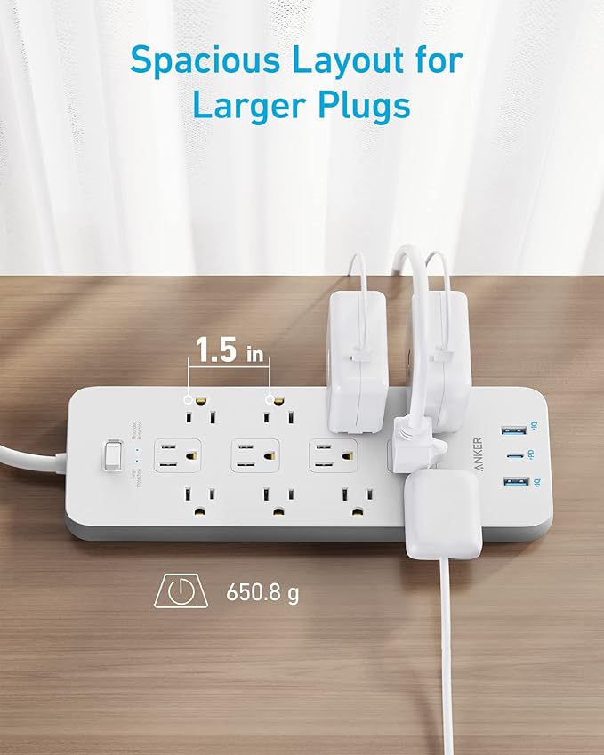 - Optimized Layout: Designed with extra space between outlets to accommodate even the largest plugs.