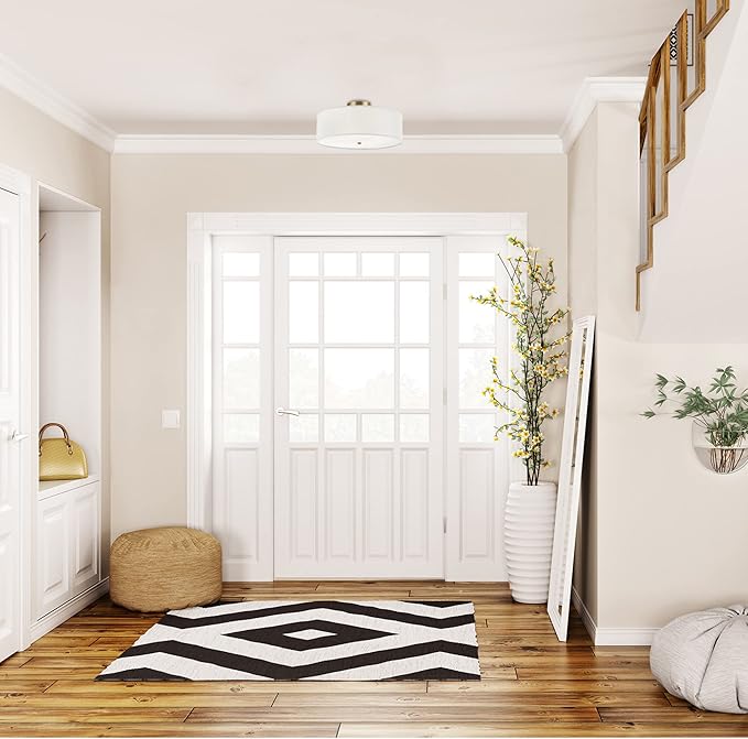 - TRADITIONAL MINIMALIST: the classic round shape of the Kyle Flush Mount Ceiling Light combined with its minimalistic design and white fabric shade brings a traditional minimalist category to life